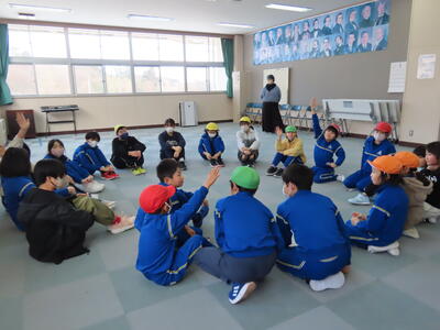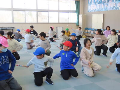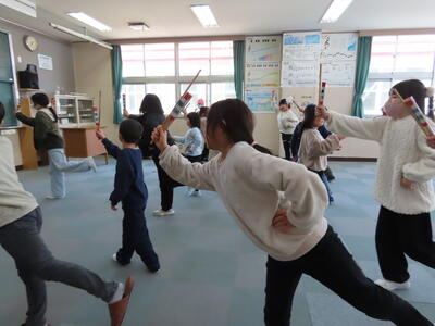 休み時間には、縦割り班で力を合わせる長縄跳びの練習が盛んです。1年生から6年生までが声を掛け合い、「全員跳び」や「八の字跳び」の記録更新を目指して一丸となっています。