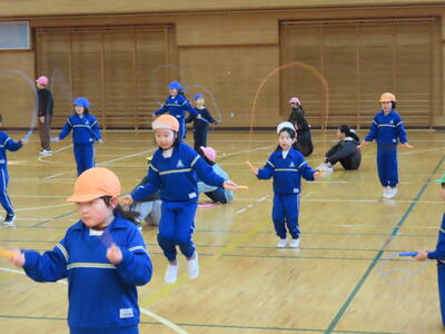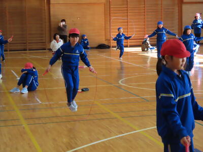 個人種目では、全員が「30秒スピード跳び」にチャレンジします。これは、県南教育事務所主催の「チャレンジロープ」を兼ねており、100回で認定証、120回以上で優秀賞が授与されます。また、二重跳び(50回で認定証、100回で優秀賞)や得意な技の披露にも挑戦します。