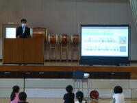 本校では、身体測定に合わせて、ミニ保健指導を行っております。今回は、養護教諭が高学年に「朝食の大切さ」を指導しました。朝食は、「頭・体・おなか」にスイッチを入れ、一日の活動の源になることを学習しました。