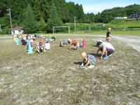 夏休み中にほとんど使われることのなかった校庭は、草が伸び放題に…2学期初めは、全校での草取りが日課です。