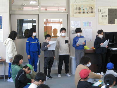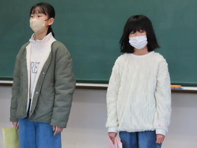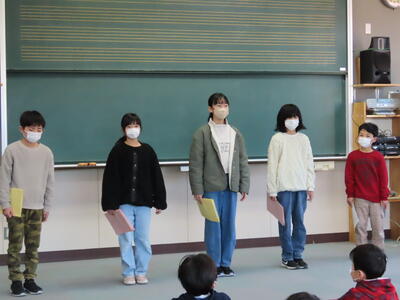 次に、児童を代表して5年生の佐藤銀仁さんが「冬休みの思い出と3学期の目標」を発表してくれました。冬休みには目標を決めて宿題に取り組んだこと、3学期には6年生になるための準備をしっかり行っていきたいということを力強く語ってくれました。