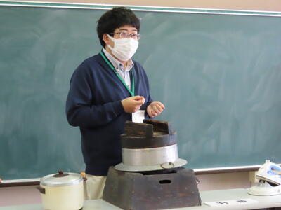 一関市民俗資料館から出前授業にお越しいただきたくさんの道具を見せていただきました。子どもたちは見たことも聞いたこともない昔の道具に目を輝かせながら聞き入っていました。