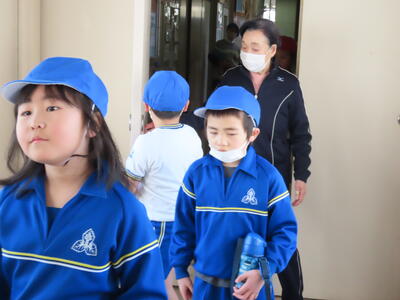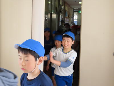 今年度第1回の避難訓練を行いました。 昨年度の「おしゃべりをせず、放送をしっかり聞く」という反省を活かしどの子も立派に避難することができました。避難完了までの時間も短くなり、子どもたちの真剣な姿勢に頼もしさを感じたひとときでした。